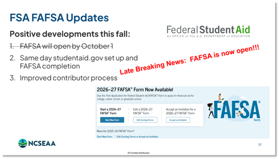 They learned the good news that for the first time in three years, the Free Application for Federal Student Aid (FAFSA) was open during the normal time of year. In fact, while it was set to open October 1, it actually opened a few days early.